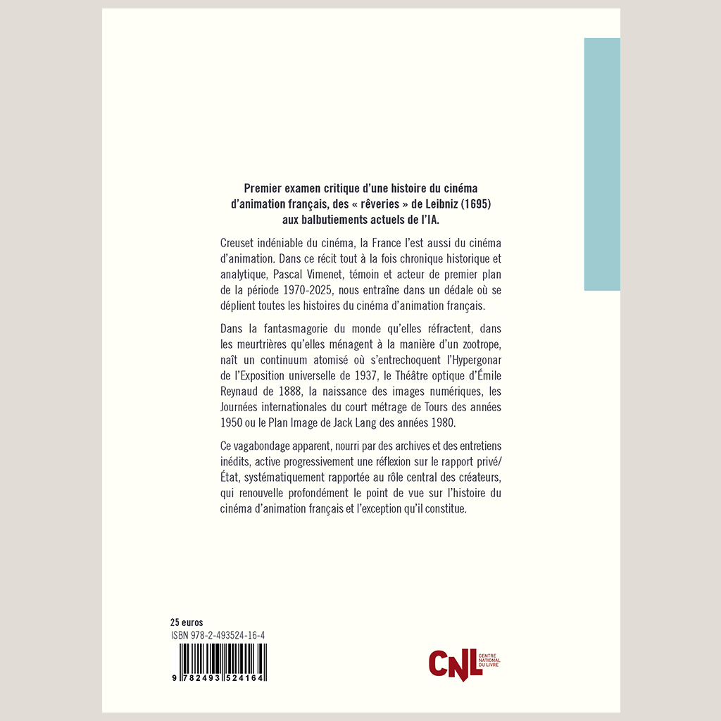Creuset indéniable du cinéma, la France l’est aussi du cinéma d’animation. Dans ce récit tout à la fois chronique historique et analytique, Pascal Vimenet, témoin et acteur de premier plan de la période 1970-2025, nous entraîne dans un dédale où se déplient toutes les histoires du cinéma d’animation français.